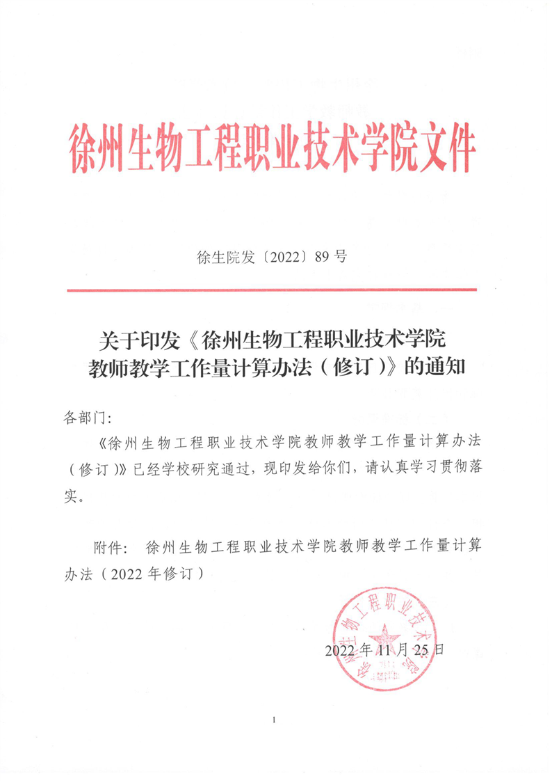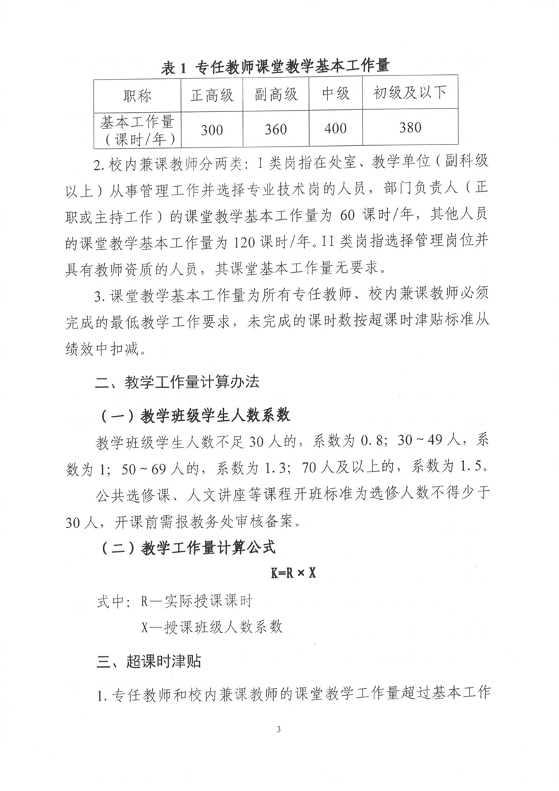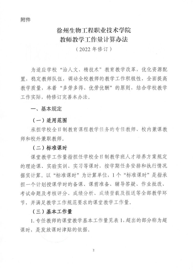 徐州生物工程职业技术学院教师课堂教学工作量计算办法